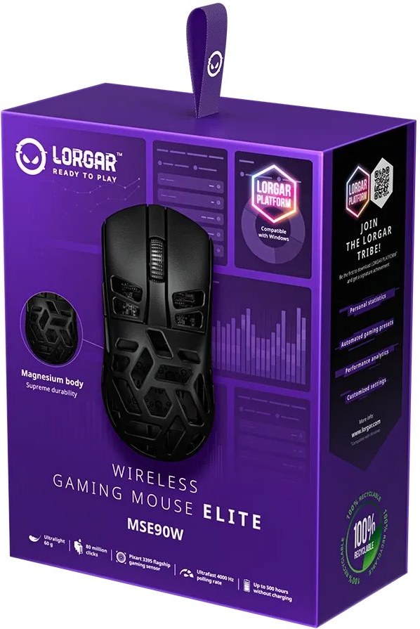 Lorgar MSE90W, elitná bezdrôtová herná myš, čierna