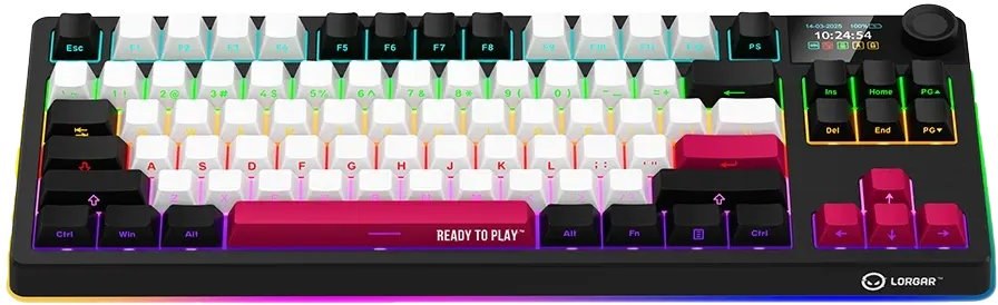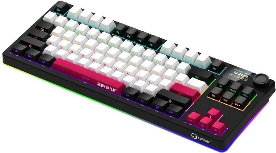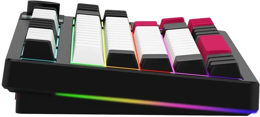 Vlastnosti klávesnice: Gasket-mount konštrukcia, viacfarebné klávesy, 19 režimov podsvietenia, konfigurovateľný viacfarebný RGB displej, multimediálne inteligentné otočné ovládanie, RGB podsvietenie, podpora NKRO, hot-swap prepínače
