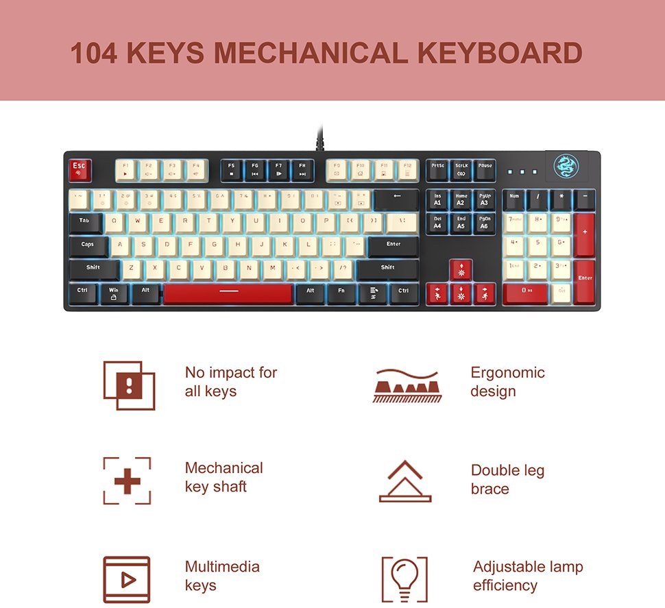 Klávesnica MageGee MK-ARMOR má 104 klávesov vrátane numerickej klávesnice, vďaka čomu je všestranná a vhodná na hranie hier aj prácu. Vďaka pokročilej technológii anti-ghosting si môžete byť istí, že každý úder bude správne zaregistrovaný, a to aj počas tých najintenzívnejších hier.