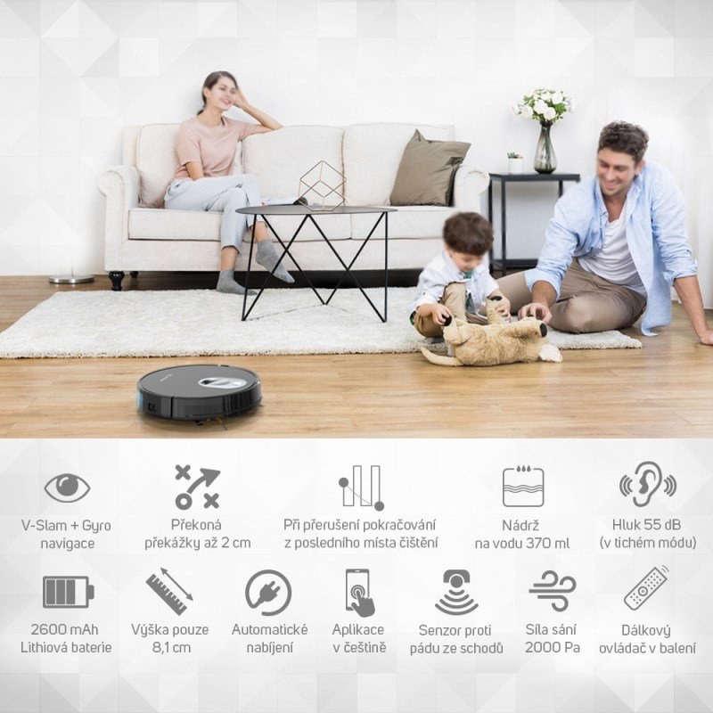 Vďaka navigačnej technológii poslednej generácie, robot detailne naskenuje plochu , ktorú má upratať. Pomocou vlastnej mobilnej aplikácie potom môžete v reálnom čase sledovať, čo už bolo upratané a koľko priestoru ešte zostáva upratať. V aplikácii si môžete takisto detailne naplánovať dátum a čas upratovania, napríklad práve v období, kedy sa budete nachádzať v práci.5 čistiacich módov