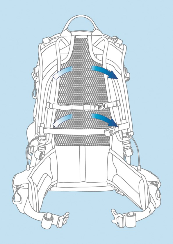 Ruksak ponúka široké a priedušné nosné popruhy, široký bedrový pás, hrudný popruh, vrecká na príslušenstvo alebo fľašku s nápojom, popruhy na ruksaku pre upevnenie statívu alebo trekingovej palice. Inovatívny remeň na prednej časti ruksaku umožňuje zabezpečenie fotoaparátu na hrudi, aby sa zabránilo tlaku na krk. Súčasťou ruksaku je aj pršiplášť.