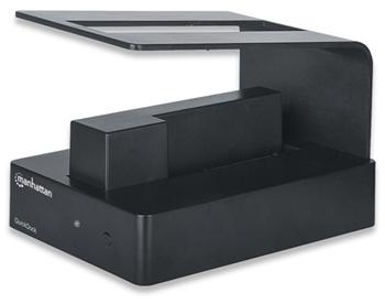 Enjoy fast data access, create portable storage and simplify HDD exchanges.Ideal for IT technicians and desktop or notebook computer owners with numerous hard-disk drives, the Manhattan QuickDock eliminates the need for multiple external enclosures and inconvenient PC case installation and removal. Its high-capacity hard-drive support will support all SATA drives and make data transfer tasks simple and easy to complete. Compact size with heavy-duty construction and rubber underside mounts help isolate and reduce vibration to keep the QuickDock and an installed drive securely in place on a desk or technician's bench. Plug and play with Windows compatibility, the Manhattan QuickDock quickly installs through an available USB port. Its hot-swap capability allows rapid, multi-HDD exchanges and quick data access without computer restarts.