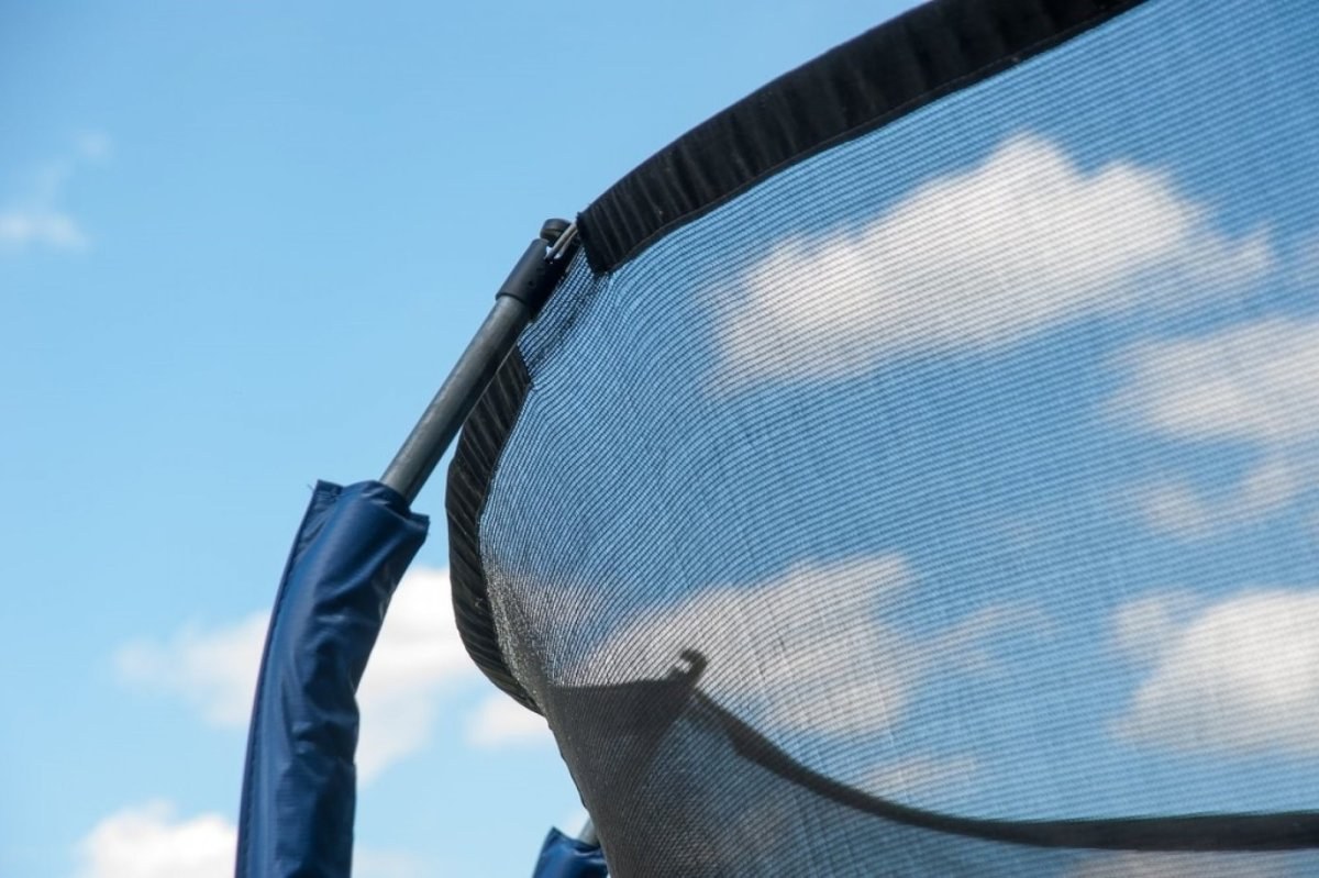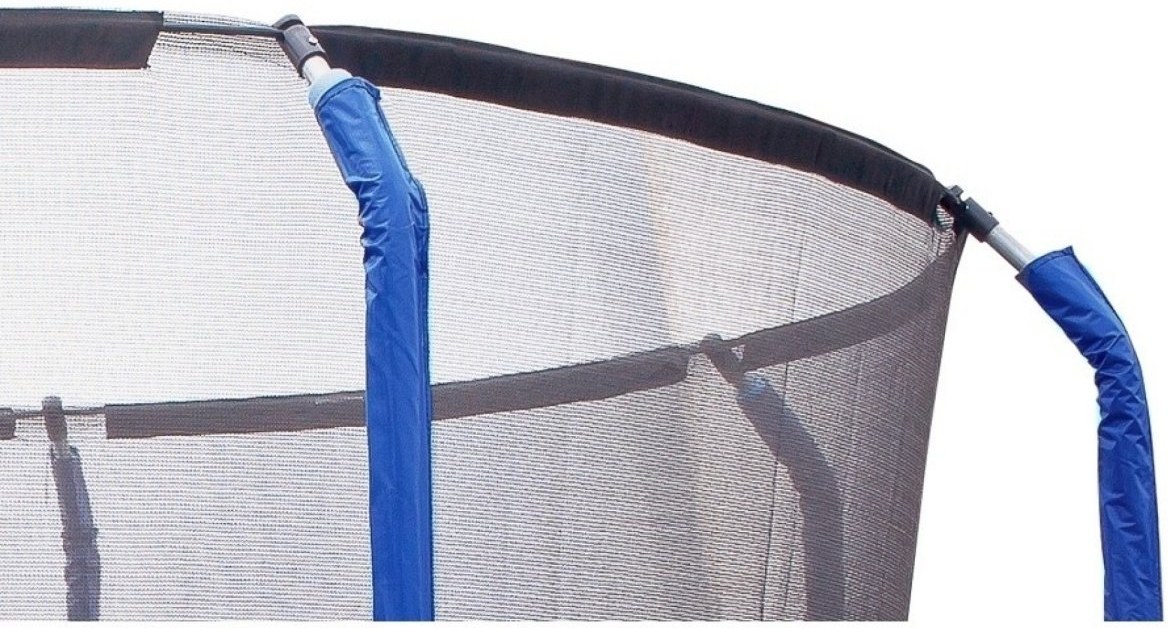 Vnútornú ochrannú sieť nájdete priamo v balení, nemusíte si ju dokupovať zvlášť. Vnútorná ochranná sieť je bezpečnejšie ako vonkajšie sieť - bráni prístupu skákajúceho do časti s pružinami. Vstupný priestor je zaistený tromi prackami a bráni vypadnutiu. Tyče sú obalené ochranným návlekom z mäkčenej peny. Nohy trampolíny sú samostatné a zvyšujú stabilitu celej trampolíny. Spojenie tyčí nôh trampolíny a siete je istené špeciálnymi sponami.Materiál a zloženie ochranných prvkov:
