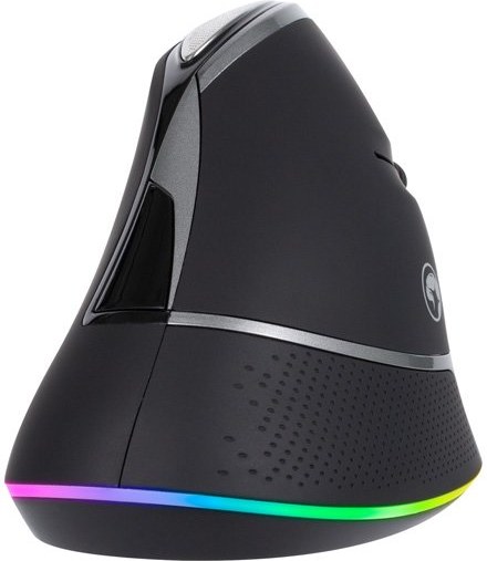 Plne ergonomický tvar sa bude na prvý pohľad zdať nemilý, možno až nepríjemný, ale po chvíľke používania tejto myši ucítite pozitívnu zmenu, najmä v zdraví Vašich zápästí. Ďalšiu úroveň pohodlí obstaráva bezdrôtové pripojenie vďaka USB nano prijímaču, ktorý Vás zbaví boja s káblom. Myš dokonca disponuje pestrým podsvietením, ktoré sa u týchto myší len veľmi zriedka vidí. Môžete si ľubovoľne zvoliť Rainbow podsvietenie s 12 svetelnými efektami. Pre maximálnu výdrž je možné toto podsvietenie samozrejme vypnúť. Ako čerešnička na torte je jemný poťah myši, vďaka ktorému bude myš v ruke držať pevne a po pocitovej stránke bude neobvykle príjemná.