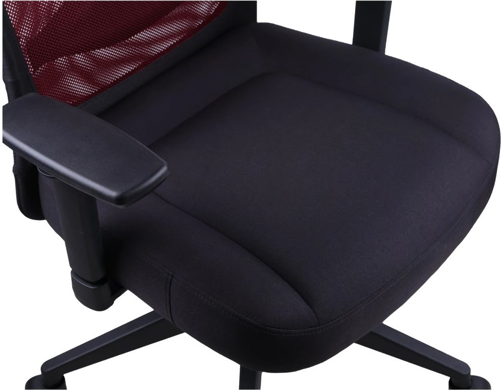 Područky možno nastaviť v troch smeroch – výškovo, do strán a dopredu/dozadu – čo umožňuje presné doladenie podľa výšky stola aj individuálnych preferencií. Táto flexibilita výrazne znižuje napätie v ramenách a pažiach, najmä pri dlhšej práci na počítači. Ergonomické nastavenie područiek pomáha správnemu držaniu tela a zvyšuje celkový komfort sedenia. Povrch područek je mäkčený, ale odolný proti opotrebeniu, takže vydrží aj intenzívne používanie.Sedadlo s mäkkou výplňou a látkovým poťahom