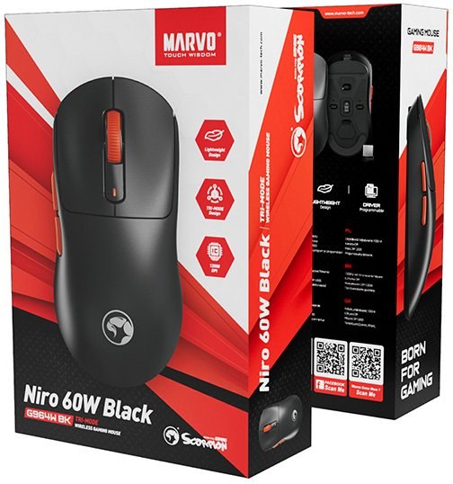 Marvo NIRO 60 Myš čierna, 12000DPI, Tri-Mode