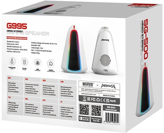 Marvo reproduktory MONKA SG-500, 2.0, 6W, biele, regulácia hlasitosti, RGB podsvietenie