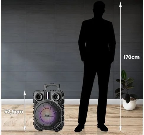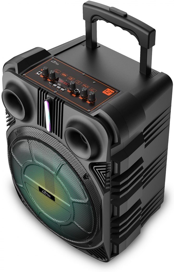 Prenosný, aktívny reproduktor so systémom karaoke* v jednom zariadení. Reproduktor je dokonalým doplnkom domácich večierkov, vonkajších udalostí, táborákov atď. Vďaka zabudovanej nabíjateľnej batérii (až 8 hodín prevádzky) je možné reproduktor vziať von.