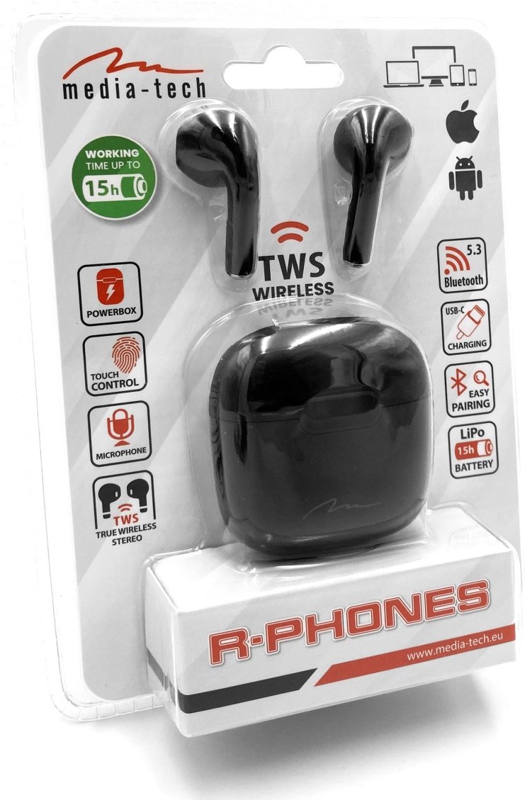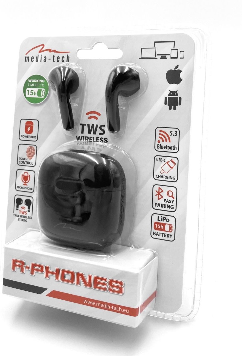 Media-Tech MT3608K R-PHONES TWS, bluetooth slúchadlá, čierne
