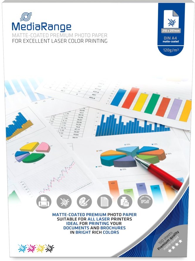 MediaRange fotopapier A4, 100 listov, 120g, matný, laser