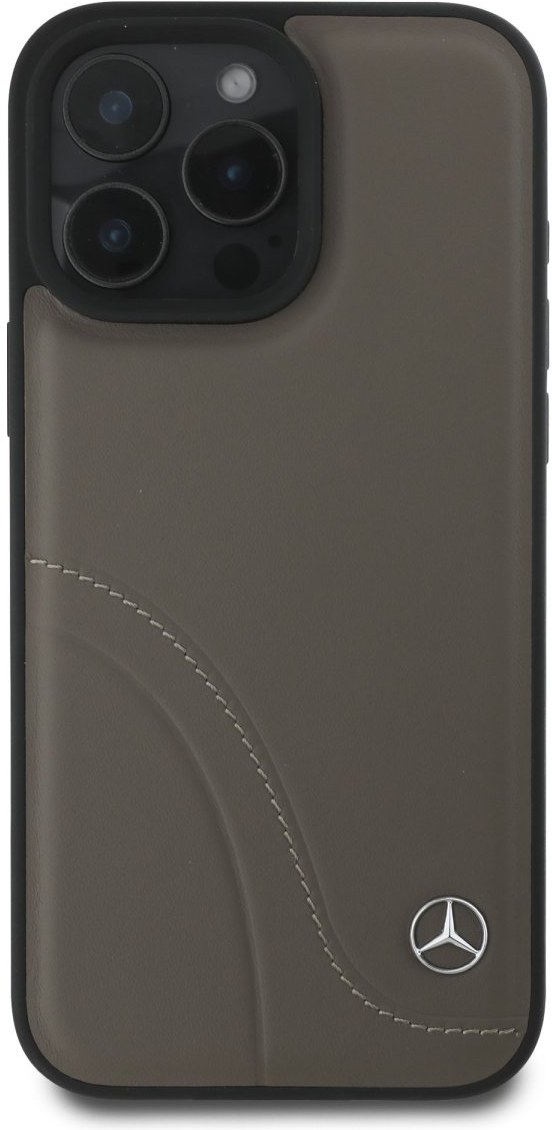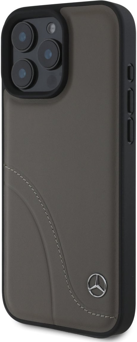 Mercedes Curved Stitches Leather kryt pre iPhone 16 Pro, hnedý