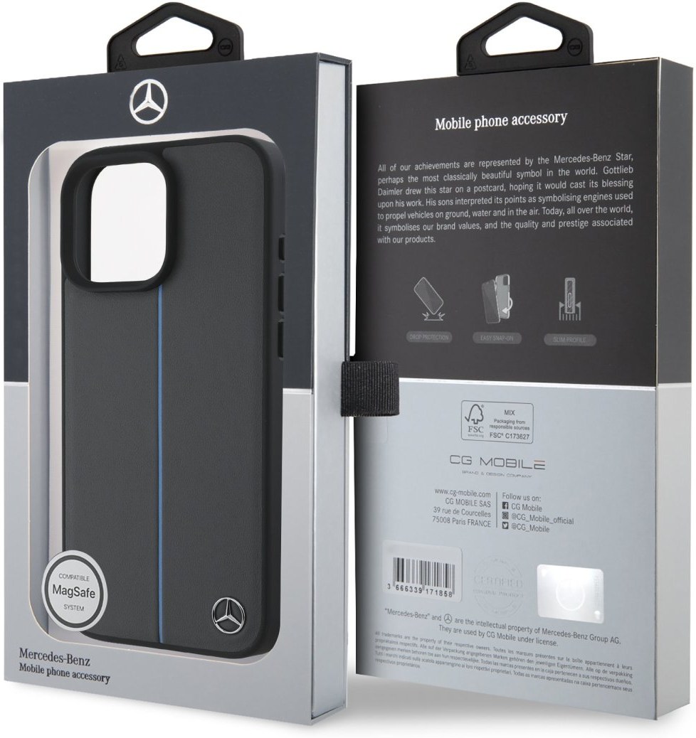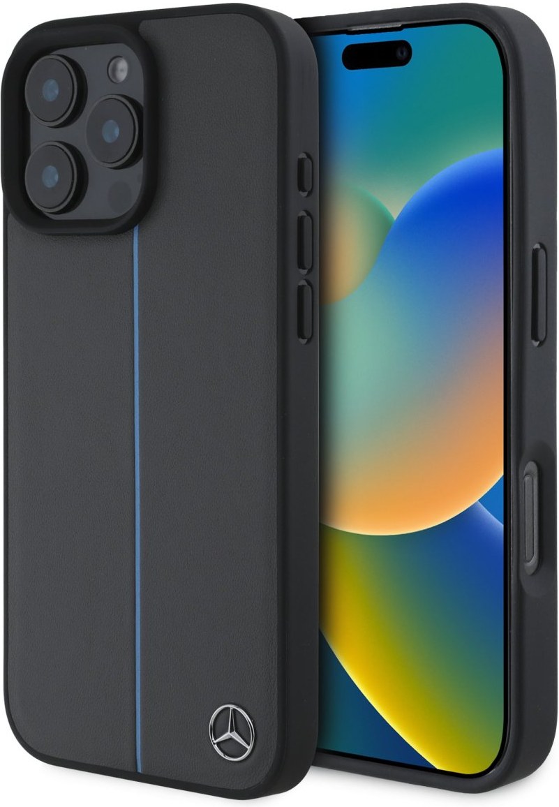 Mercedes Leather Blue Stripe MagSafe kryt pre iPhone 16 Pro