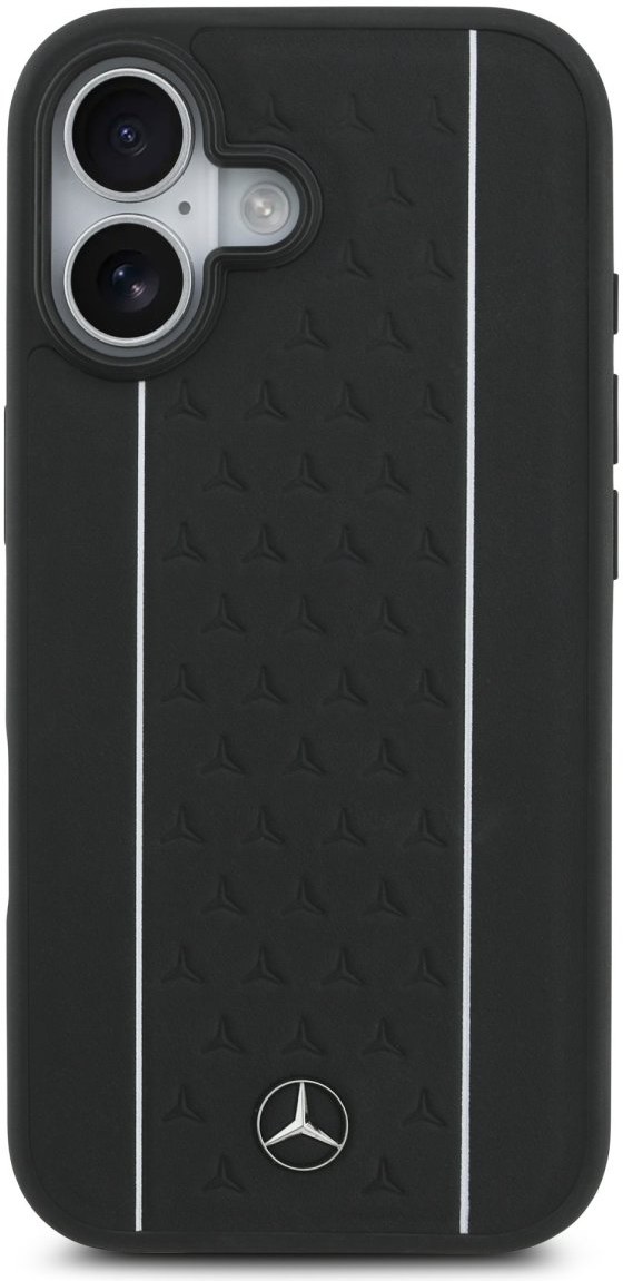 Mercedes Leather Star Pattern and Stripes MagSafe kryt pre iPhone 17, čierno-biely