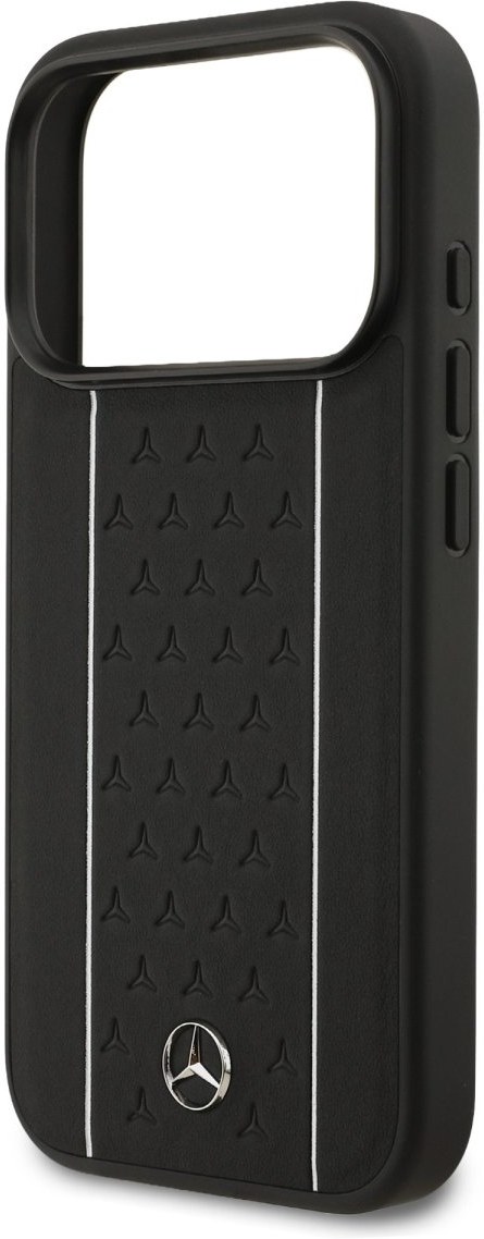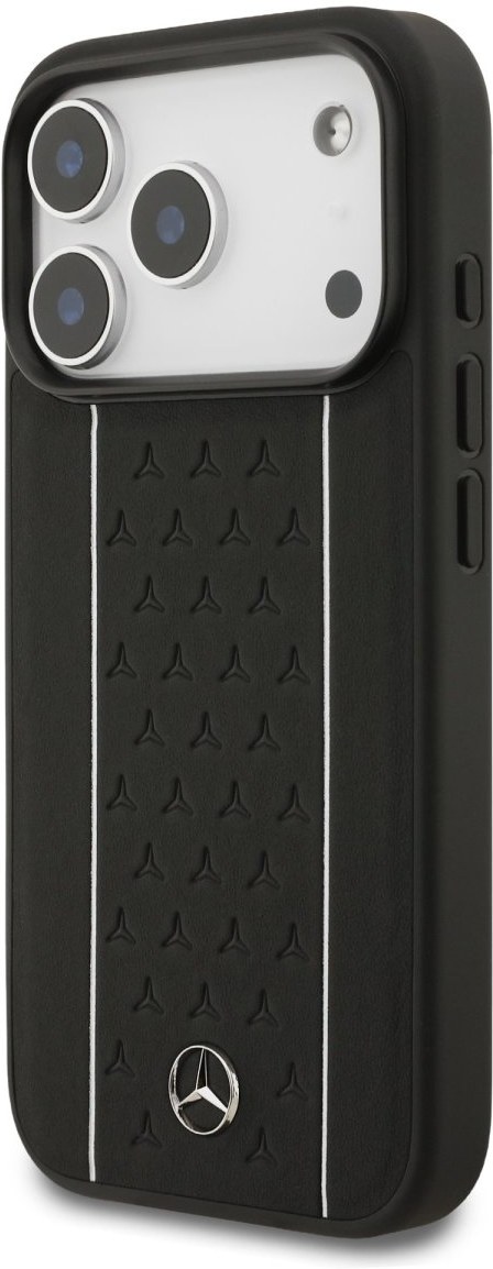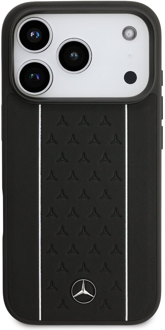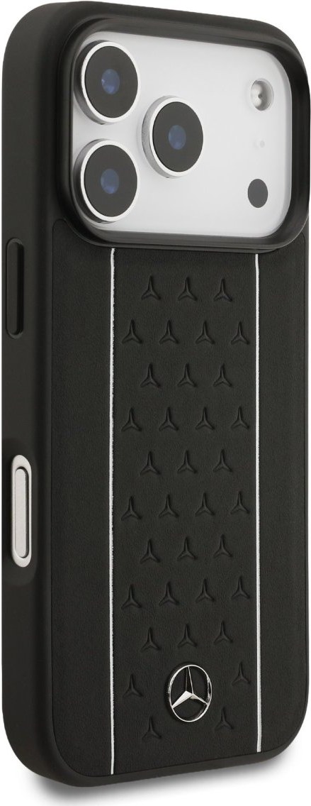 Mercedes Leather Star Pattern and Stripes MagSafe kryt pre iPhone 17 Pro, čierno-biely