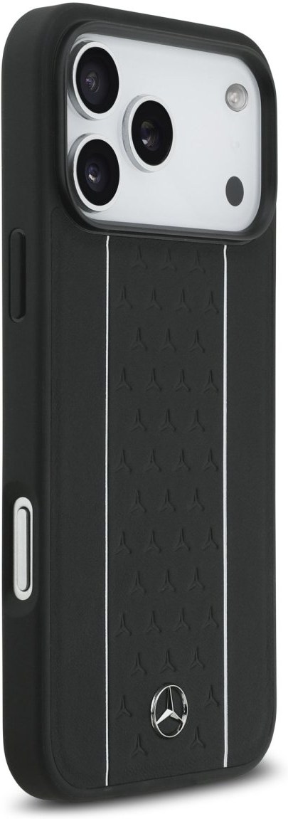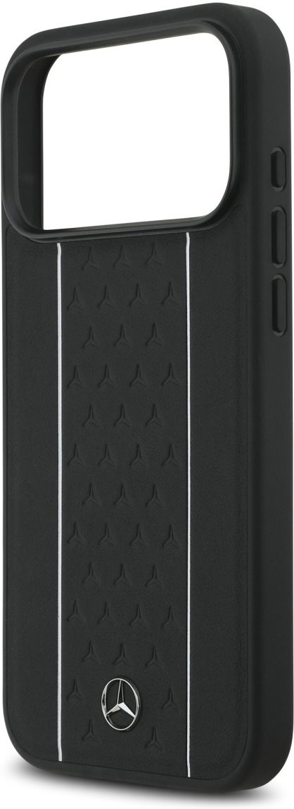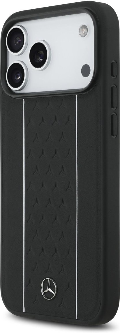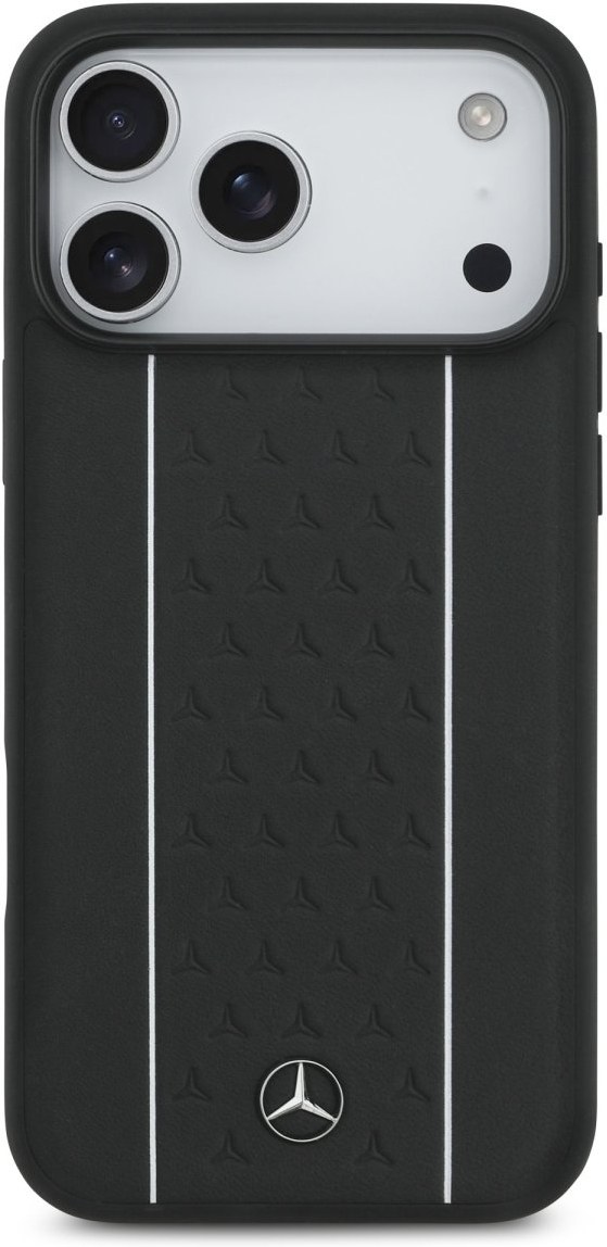 Mercedes Leather Star Pattern and Stripes MagSafe kryt pre iPhone 17 Pro Max, čierno-biely