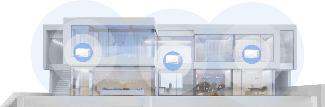 Systém pozostáva z dvoch jednotiek Halo, ktoré spoločne vytvárajú jednotnú Wi-Fi sieť s pokrytím až 460 m2 (ideálne pre 3–5-izbové domy). Mesh technológia zabezpečuje plynulý roaming bez výpadkov – pri presune po dome zariadenia automaticky prepínajú na najbližší uzol, aby bol signál vždy stabilný a bez oneskorení. Zariadenie zároveň zvláda pripojiť viac ako 200 zariadení naraz, čo z neho robí vhodnú voľbu pre inteligentné domácnosti s množstvom senzorov, TV a mobilov.