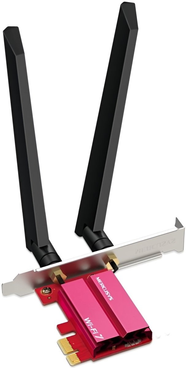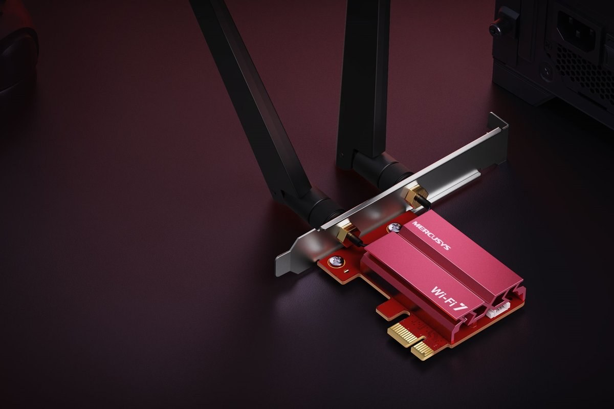 Mercusys MA47BE je výkonný PCIe adaptér novej generácie, ktorý prináša rýchle, stabilné a mimoriadne efektívne bezdrôtové pripojenie vďaka podpore Wi-Fi 7. Táto technológia využíva najnovšie štandardy, vrátane 4K-QAM a ultraširokého 320 MHz kanála, čo umožňuje výrazne vyššiu priepustnosť a nižšiu latenciu. Adaptér poskytuje tri frekvenčné pásma – 6 GHz, 5 GHz a 2,4 GHz – s kombinovanou rýchlosťou až 5765 + 2882 + 688 Mbps, vďaka čomu si užijete plynulé streamovanie, rýchle sťahovanie aj hranie hier v najvyššej kvalite.