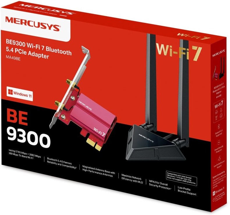 BE9300 Wi-Fi 7 Bluetooth 5.4 PCIe adaptér (MA49BE)