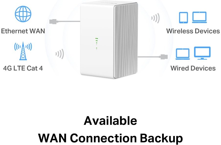 S plne funkčným portom WAN/LAN môže MB110-4G fungovať ako smerovač, ktorý je kompatibilný s káblovými, optickými a DSL modemami, alebo bezdrôtový internet pre káblové zariadenia.