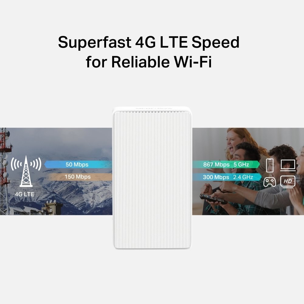 Plne kompatibilný s FDD-LTE a TDD-LTE pre prácu s väčšinou poskytovateľov služieb na celom svete. Vložte nano SIM kartu a zapnite smerovač, aby ste mohli zdieľať svoju 4G LTE sieť s viacerými zariadeniami Wi-Fi.