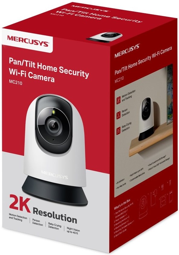 Mercusys MC210 je inteligentná domáca bezpečnostná Wi-Fi kamera, ktorá ponúka 2K 3MP rozlíšenie (2304 × 1296 pixelov), vďaka čomu poskytuje mimoriadne ostrý a detailný obraz. Vďaka kvalitnej optike a digitálnemu zoomu až 10,8× dokáže zachytiť aj tie najmenšie detaily. Kamera je ideálna na monitorovanie domácnosti, detí, domácich miláčikov či vstupných priestorov. Snímková frekvencia až 30 fps zabezpečuje plynulé video bez trhania, čo je výhodné najmä pri sledovaní pohybu.