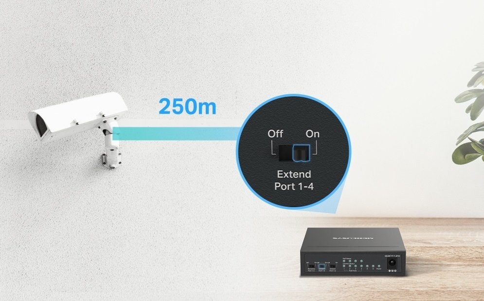 PoE prenos až na 250 m, jednoduchá inštalácia bez konfigurácie