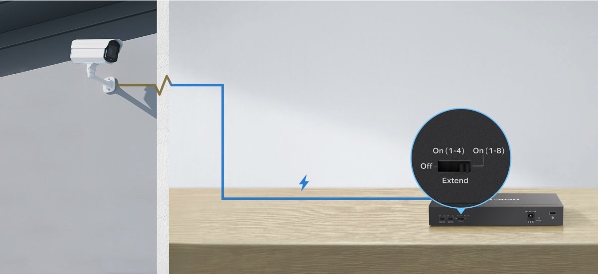 Prepínač ponúka špeciálne režimy ako Extended Mode, ktorý umožňuje prenos dát a napájania až do vzdialenosti 250 metrov – ideálne pre rozsiahle kamerové systémy. Isolation Mode zvyšuje bezpečnosť tým, že izoluje jednotlivé porty, čím zabraňuje neželanému prístupu medzi zariadeniami. Funkcia PoE Auto Recovery automaticky reštartuje nefunkčné zariadenia, čím minimalizuje výpadky.