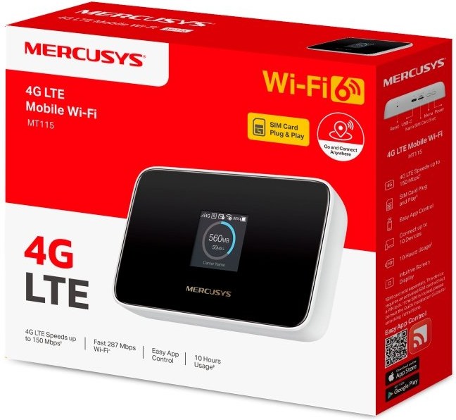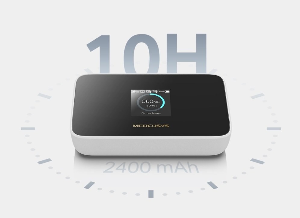 Zariadenie je vybavené batériou s kapacitou 2400 mAh, ktorá poskytuje až 10 hodín nepretržitého používania. Nabíjanie prebieha cez moderný USB-C port. MT115 disponuje intuitívnym 1,44" TFT displejom, ktorý zobrazuje všetky dôležité informácie – stav batérie, signál, počet pripojených zariadení či využitie dát. Správa zariadenia je jednoduchá vďaka mobilnej aplikácii MERCUSYS dostupnej pre Android aj iOS.