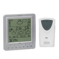 Meteo stanica príjmajúca dáta Meteotime. 4 dňová predpoveď pre pre 60 regiónov Európy, zobrazenie teploty, smeru a sily vetra, tlaku, meranie vlhkosti v miestnosti aj v exteriéri, východ a západ slnka, hodiny, dátum, deň v týždni, čas synchronizovaný HBG + DCF77, predpoveď na deň, predpoveď na noc, min/max pamäť, ukazateľ kritického počasia, indikátor vybitej batérie. 1 vonkajší bezdrôtový senzor merania teploty a 1 merania vlhkosti. Rozmery 12.6 x 11.6 x 2.7 cm Dodávaný s batériamiwww.irox.com
