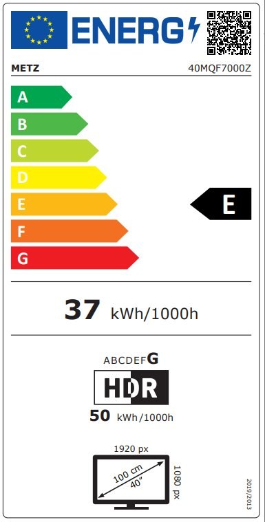 Trieda energetickej účinnosti (HDR): G (podľa 2019/2013/EÚ)