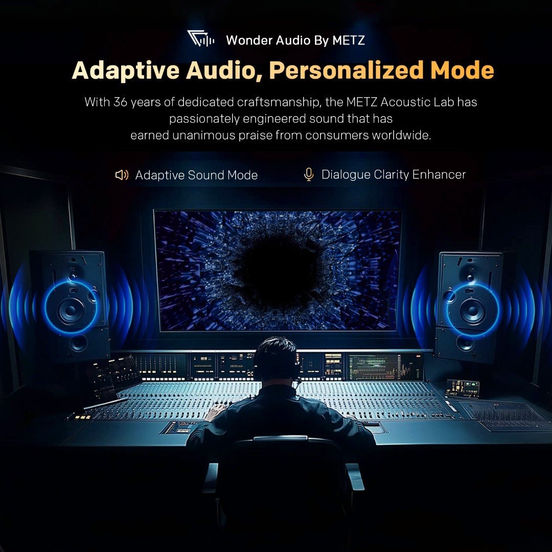 Tím METZ Acoustics testuje a ladí zvuk pre rôzne potreby sledovania a ponúka šesť zvukových režimov: Štandardný, Kino, Hudba, Koncert, Správy a Osobný. Vždy budete mať skvelý, pohlcujúci zvukový zážitok, bez ohľadu na to, čo sledujete.