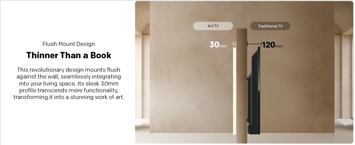 Revolučný dizajn Flush Mount Design sa montuje priamo na stenu a dokonale sa integruje do vášho obývacieho priestoru. Jeho elegantný 30 mm profil presahuje čisto funkčnú stránku a mení ho na ohromujúce umelecké dielo.