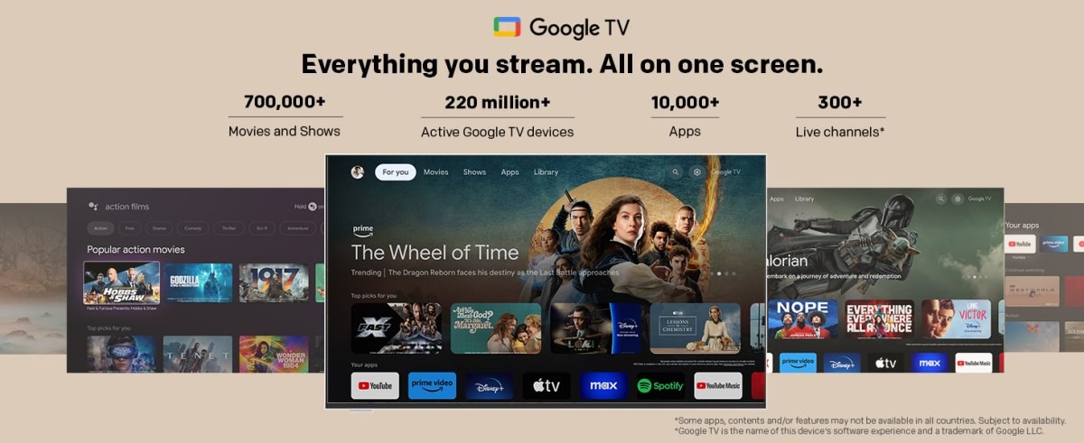 televízor, energetická trieda (A-G): F, 65", LED, 4K Ultra HD (3840x2160), GoogleTV, 60 Hz, DVB-T2 (H.265/HEVC), DVB-T2, DVB-C, DVB-S2, HDMI, LAN RJ45, USB port, HDR, Wi-Fi 5, CI/CI+ Slot, 300×400 mmZobraziť viac