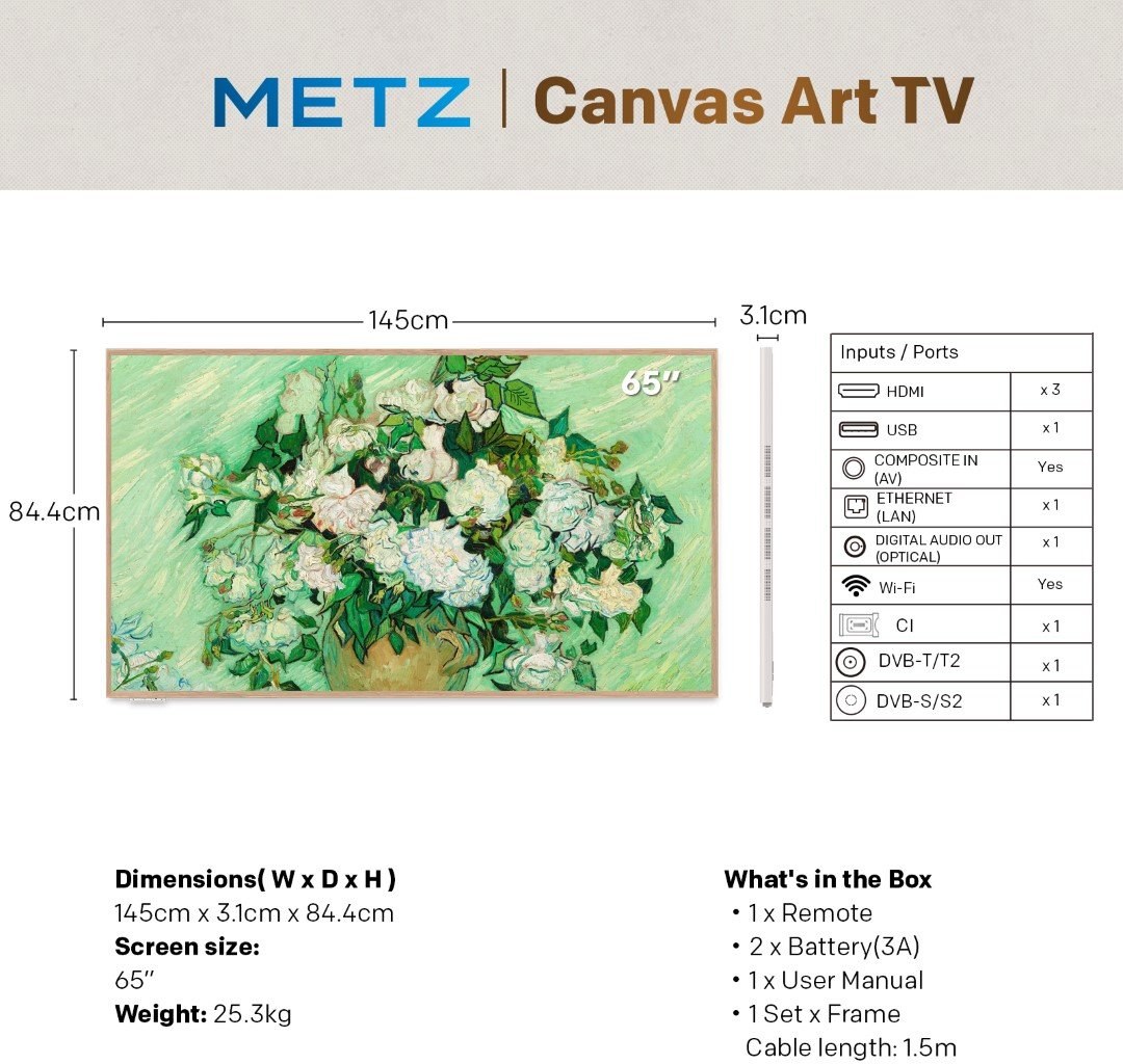 METZ 65MUE7800Z, Art TV, QLED+, 65" (164cm), 4K, matný displej