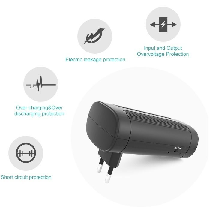 MHPower MHP181-5 Mini UPS je multifunkčný napájací adaptér a Mini UPS 2 v 1. Jedná sa o vysoko kvalitný, veľmi malý, prenosný záložný zdroj pre domáce aj kancelárske použitie, ktorý vás nikdy nenechá na holičkách. MHPower Mini UPS obsahuje ľahko vymeniteľný akumulátor s kapacitou 2500 mAh, ktorý vám zaistí nepretržitú prevádzku vášho zariadenia pri výpadku prúdu.UPS napájací adaptér je určený na núdzové zálohovanie zariadení, ako sú: