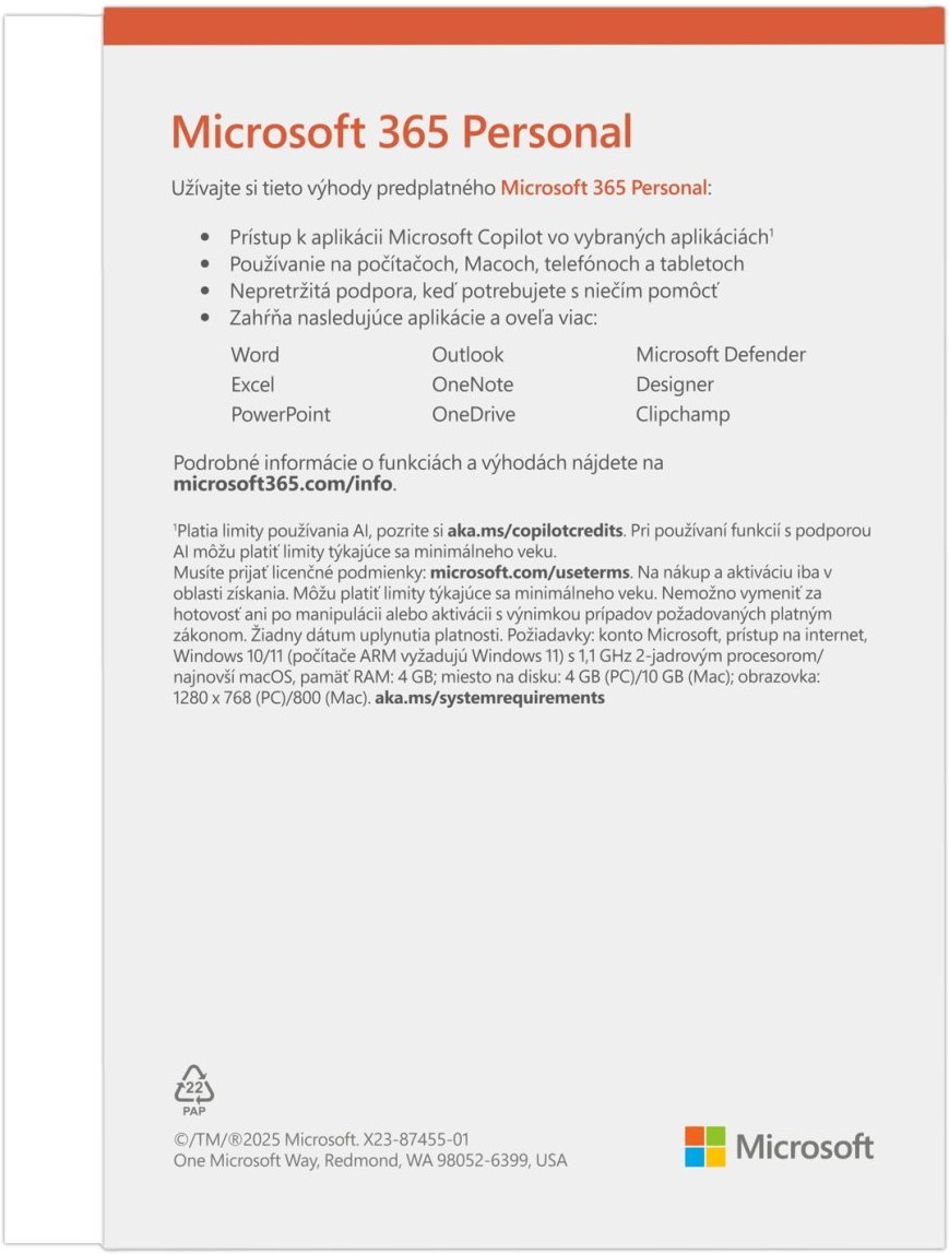 Microsoft 365 Personal FY25H2 Mac/Win, 1rok, SK