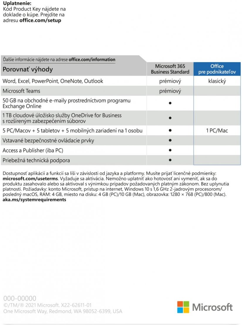 Kľúčové vlastnosti Office 2021 pre domácnosti a podnikateľov, SK BOX