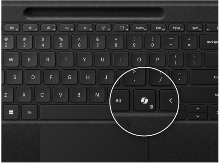 Klávesnica je potiahnutá luxusným a odolným materiálom Alcantara, ktorý je príjemný na dotyk a dodáva zariadeniu prémiový vzhľad. Kľúčovým vylepšením je nový, o 14,3 % väčší haptický touchpad. Ten poskytuje realistickú spätnú väzbu pri každom kliknutí a umožňuje širokú škálu prispôsobení – od citlivosti kliknutia až po definovanie oblastí pre pravé tlačidlo. Klávesnica obsahuje aj celý rad funkčných klávesov (F1–F12), špeciálne tlačidlo pre Copilot na rýchly prístup k umelej inteligencii, kláves na stlmenie mikrofónu a nástroj na vytváranie výstrižkov obrazovky. Podsvietenie klávesov zaisťuje pohodlnú prácu aj v slabších svetelných podmienkach.