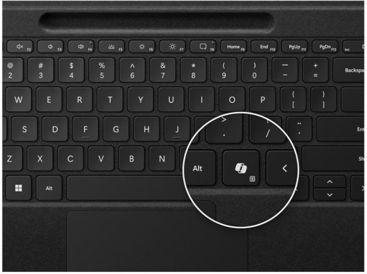 Klávesnica je potiahnutá luxusným a odolným materiálom Alcantara, ktorý je príjemný na dotyk a dodáva zariadeniu prémiový vzhľad. Kľúčovým vylepšením je nový, o 14,3 % väčší haptický touchpad. Ten poskytuje realistickú spätnú väzbu pri každom kliknutí a umožňuje širokú škálu prispôsobení – od citlivosti kliknutia až po definovanie oblastí pre pravé tlačidlo. Klávesnica obsahuje aj celý rad funkčných klávesov (F1–F12), špeciálne tlačidlo pre Copilot na rýchly prístup k umelej inteligencii, kláves na stlmenie mikrofónu a nástroj na vytváranie výstrižkov obrazovky. Podsvietenie klávesov zaisťuje pohodlnú prácu aj v slabších svetelných podmienkach.