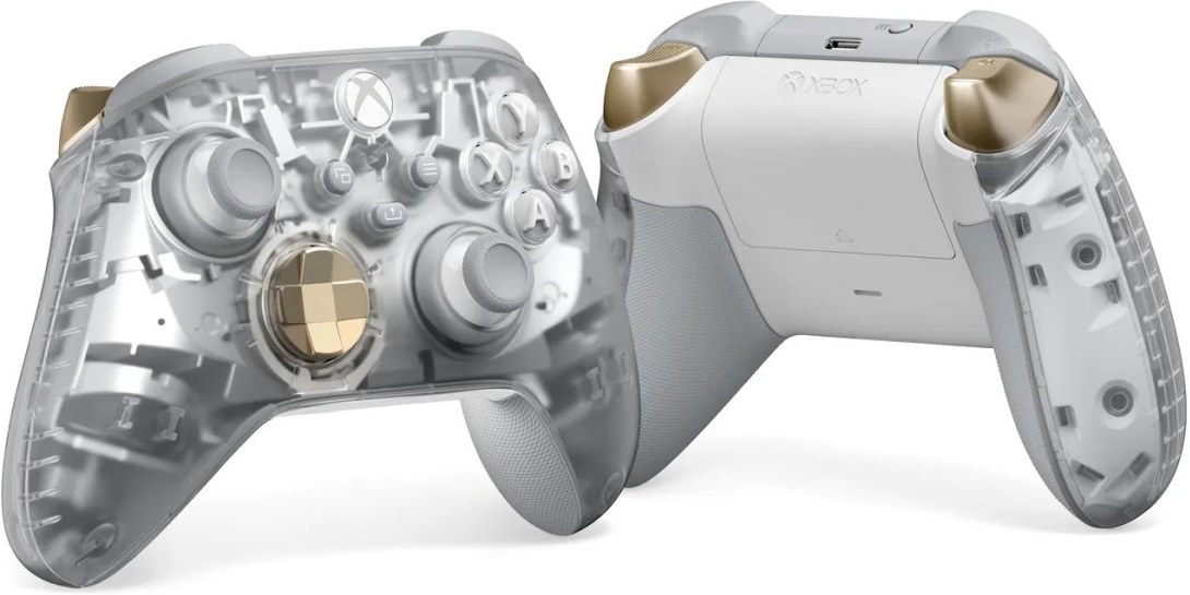 Odhaľte tajomstvá bezdrôtového ovládača Xbox – špeciálna edícia Ghost Cipher s priehľadným jasným dizajnom, strieborným interiérom, kovovými prvkami a ďalšími funkciami. Pozrite sa cez priehľadné vrchné puzdro a bočné kryty, aby ste videli, že zvnútra presvitajú kovové, strieborné vnútorné časti.Odhaľ záhadu