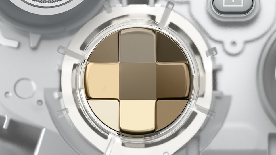 priehľadné vrchné puzdro, pogumované rukoväte Ash Grey, kovové bronzové spúšte a D-pad