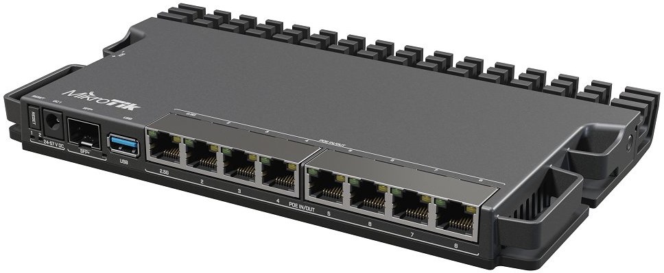 RB5009 je úplne nový rad RouterBOARDov, ktorý prichádza s pasívnym chladením, inovatívnym až futuristickým dizajnom a vysokým výkonom (o 60 - 90 % vyšší ako RB4011) o ktorý sa zasluhuje 64bit ARM architektúra procesora s taktom 1400 MHz, 1GB úložisko. Router disponuje 7× Gigabit LAN, 1× 2.5Gbit LAN s možnosťou PoE IN aj PoE OUT (802.3af/at) na všetkých ôsmich ethernetových portoch s celkovým PoE budgetom 130 W, DC jack či svorkovnicu z ľavého boku (24.. 57V DC ), 1× SFP+ slot a 1× USB 3.0. Práve vďaka dizajnu kovového šasi je možné s dokúpiteľným príslušenstvom namontovať router do 19" racku. Dokonca až 4 routery naraz sa vďaka úsporným rozmerom zmestia do 1U výšky!Kľúčové vlastnosti