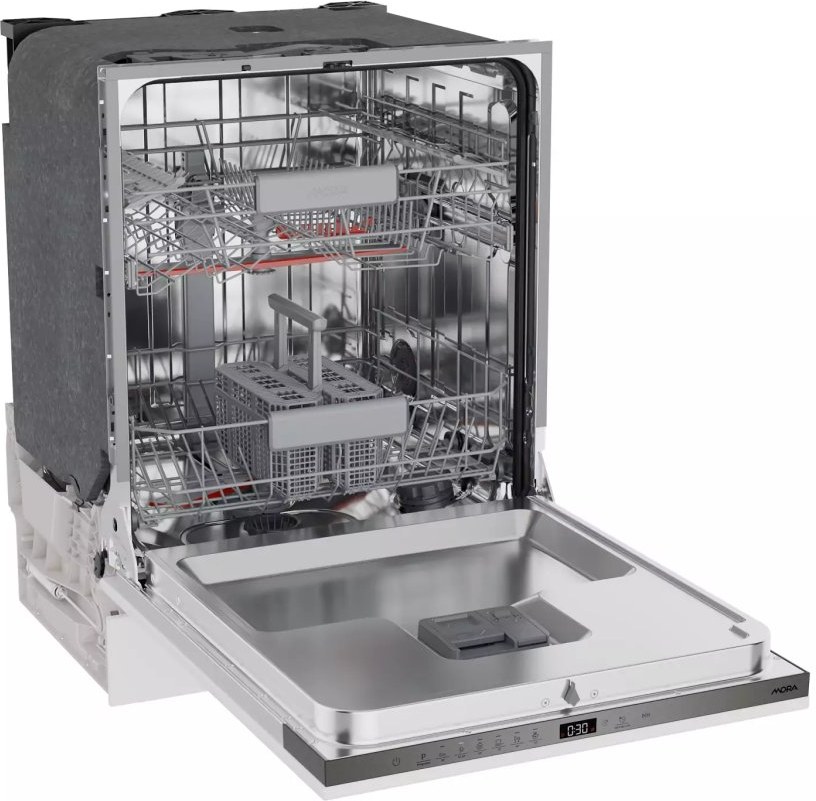 Vstavaná plne integrovaná umývačka Mora IM 6434 s 2 zásuvkami je vhodná aj do väčších rodín, pretože je do nej možné umiestniť až 14 obedových súprav naraz. Príborový košík poskytuje maximálnu flexibilitu pri umývaní príborov. Podľa vašich aktuálnych potrieb môžete buď celý košík naplniť príborom alebo ho rozdeliť na dva samostatné košíky, ktoré je možné rôzne umiestniť v rámci spodného koša umývačky. Takto do umývačky vložíte maximum riadu. Skrytý ovládací panel je vybavený dotykovým ovládaním s displejom a mnohými praktickými funkciami, ako je napríklad RýchleUmývanie, ktoré umožňuje skrátiť dĺžku vybraných programov. Ak zvolíte funkciu SušeniePlus, po ukončení programu sa automaticky pootvoria dvierka, aby tak unikla para a následný sušiaci cyklus bol efektívnejší a energeticky úsporný. Energiu pomáha šetriť aj možnosť pripojenia priamo na teplú vodu pomocou špeciálnej hadice, odolávajúcej vysokým teplotám. Samozrejmosťou je úsporný ECO Program alebo AUTO Program, ktorý sám zvolí optimálne parametre umývania. Praktický je aj odložený štart až o 24 hodín. Umývačka má navyše praktický samočistiaci filter, a tak automaticky odstráni zvyšky mastnoty a jedla vo filtri a zamedzí nesprávnemu chodu spotrebiča. Má tiež automatický program na čistenie celého vnútra umývačky vrátane ramien a trysiek. So systémom AquaStop sa nemusíte obávať nemilého prekvapenia v podobe vytopenia.Auto program