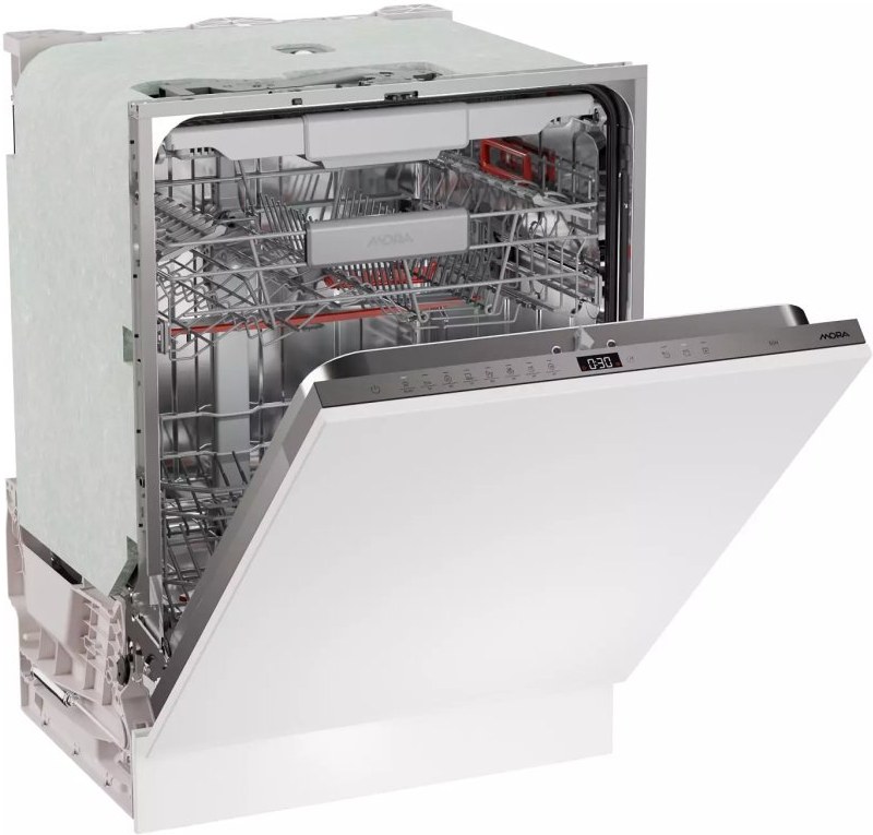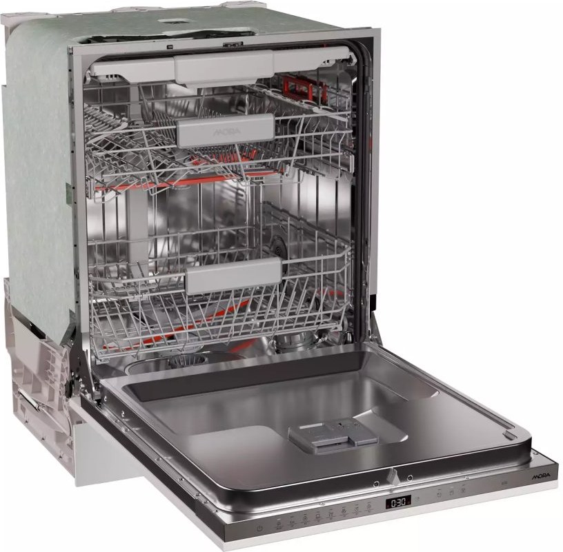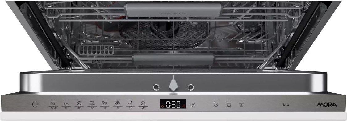 Vstavaná plne integrovaná umývačka MORA IMB 6678 v úspornej energetickej triede B si pri štandardnej šírke 60 cm poradí s neuveriteľnými 16 súpravami riadu. Riad dokonale umyje vďaka trom ostrekovacím ramenám a piatim výškovým úrovniam prúdu vody, takže bude bezchybne čisté, aj keď bude umývačka naozaj plná a riad bude husto naskladaný. Je vybavená tromi košmi s pohyblivými prvkami a prispôsobiteľným nastavením. Vodiace lišty v hornom koši sú navyše opatrené guľôčkovými ložiskami. Horný kôš slúži na starostlivé a šetrné umývanie príborov a kuchynského náčinia, ľavý a pravý panel môžete posúvať podľa toho, aký veľký priestor v hornom koši potrebujete. V hornom a spodnom koši nájdete priestor aj pre vyššie poháre na víno. Špeciálny gumový materiál ich udrží v pevnej polohe. Tieto držiaky sú flexibilné a deliteľné, s vyhradeným priestorom pre rôzny počet pohárov, aby vyhovovali vašim potrebám. Skrytý ovládací panel je vybavený dotykovým ovládaním s displejom a mnohými praktickými funkciami, ako je napríklad Rýchle Umývanie, ktoré umožňuje skrátiť dĺžku vybraných programov. Ak zvolíte funkciu SušeniePlus, po ukončení programu sa automaticky pootvoria dvierka, aby tak unikla para a následný sušiaci cyklus bol efektívnejší a energeticky úsporný. Energiu pomáha šetriť aj možnosť pripojenia priamo na teplú vodu pomocou špeciálnej hadice, odolávajúcej vysokým teplotám. Samozrejmosťou je úsporný ECO program alebo AUTO program, ktorý sám zvolí optimálne parametre umývania. Vhod príde aj odložený štart až o 24 hodín. Umývačka má navyše praktický samočistiaci filter, a tak automaticky odstráni zvyšky mastnoty a jedla vo filtri a zamedzí nesprávnemu chodu spotrebiča. So systémom AquaStop sa nemusíte obávať nemilého prekvapenia v podobe vykúrenia. Umývačka je osadená novým výkonným invertorovým motorom a je veľmi tichá (39 dB). Dokonca sa aj sama vyčistí - stačí raz za mesiac pustiť automatický program čistenia, ktorý vyčistí vaňu, ostrekovacie ramená aj trysky.Invertorový PowerDrive motor