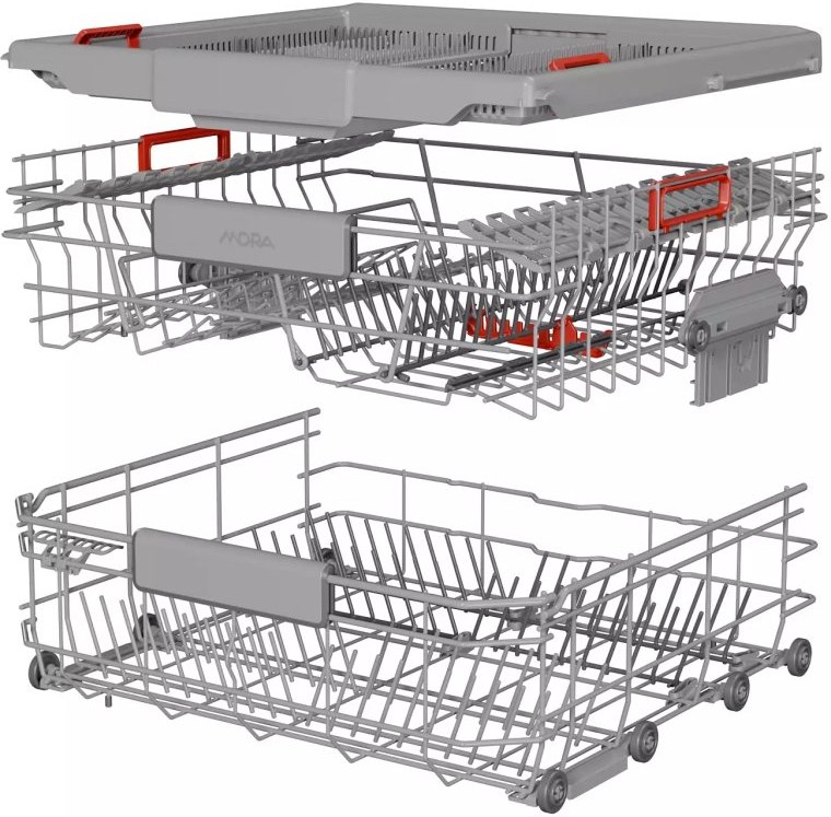 Maximálna flexibilitaUmývačky MORA s kapacitou až 16 jedálenských súprav disponujú 3 košíku sa zvýraznenými pohyblivými prvkami, vďaka ktorým môžete jednoducho prispôsobiť interiér koša podľa aktuálnych potrieb. Horný kôš môžete zdvihnúť aj pri plnom naložení, takže získate priestor pre vloženie aj objemných hrncov, pekáčov alebo servírovacích podnosov. Príbory možno perfektne usporiadať v príborovej zásuvke, kde sa vzájomne nepoškriabu a môžu sa dokonale vysušiť.