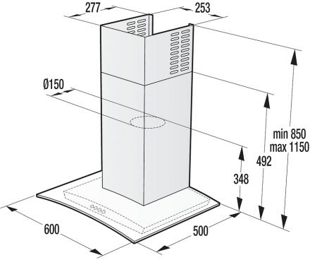 komínový digestor, energetická trieda C, hlučnosť 66 dB, mechanické ovládanie, osvetlenie, spätná klapka 150 mm, odťah alebo recirkuláciaZobraziť viac