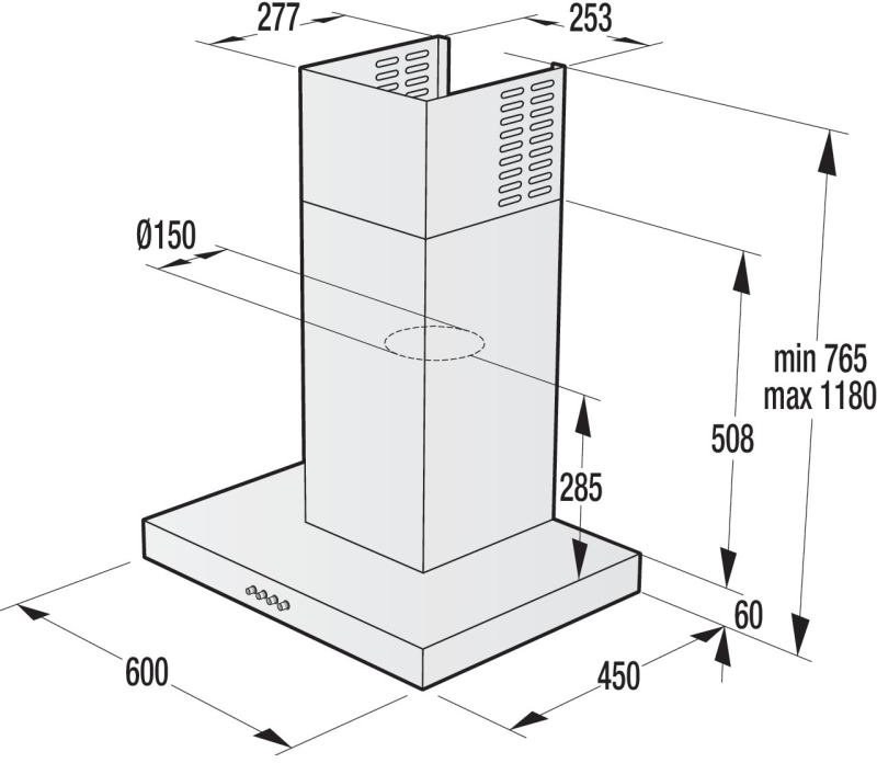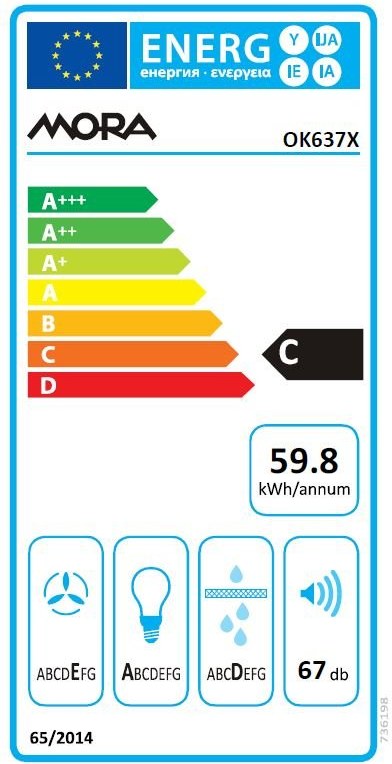 komínový digestor, energetická trieda C, hlučnosť 67 dB, mechanické ovládanie, osvetlenie, spätná klapka 150 mm, odťah alebo recirkuláciaZobraziť viac