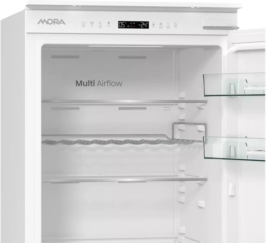 Vstavaná kombinovaná chladnička MORA VCMDN 3024 je navrhnutá tak, aby vám každý deň uľahčila život a zároveň uchovala vaše potraviny dlhšie čerstvé. Vďaka elektronickému ovládaniu s prehľadným LED displejom jednoducho nastavíte ideálnu teplotu pre chladničku aj mrazničku – a aktivujete aj praktické režimy ako rýchle chladenie, rýchle mrazenie či úsporný EcoMode počas vašej neprítomnosti. Technológia NoFrost Dual vás oslobodí od zdĺhavého odmrazovania – studený vzduch cirkuluje rovnomerne, znižuje vlhkosť a bráni tvorbe ľadu na stenách aj potravinách. CoolSense technológia sa prispôsobuje vašim zvykom – chladnička rozpozná, ako často dvierka otvárate, a automaticky upraví teplotu tak, aby potraviny zostali čerstvé čo najdlhšie pri minimálnej spotrebe energie. Funkcia CoolConvert prináša flexibilitu vždy, keď potrebujete viac priestoru na nápoje alebo občerstvenie – jediným dotykom premeníte mrazničku na chladničku alebo veľkú nulovú zónu. Systém Multi AirFlow sa stará o rovnomerné prúdenie chladného vzduchu, vďaka čomu sú vaše potraviny správne uskladnené, nech ich umiestnite kamkoľvek. Objemná zásuvka VitaBox vytvára ideálne podmienky na dlhodobé uchovanie ovocia a zeleniny – vždy čerstvých, plných chuti a vitamínov. Chladnička sa ľahko prispôsobí vašej kuchyni – dvierka umožňujú zmenu smeru otvárania a výškovo nastaviteľné police z odolného skla sa prispôsobia akémukoľvek obsahu. Bezpečne unesú aj ťažšie hrnce či väčšie balenia potravín. Extra tichá prevádzka 35 dB je veľkým bonusom – chladnička je vhodná aj do kuchyne spojenej s obývačkou alebo jedálňou. Jej chod je takmer nepočuteľný, takže vás nebude rušiť ani počas noci.Ľavý a pravý záves dverí