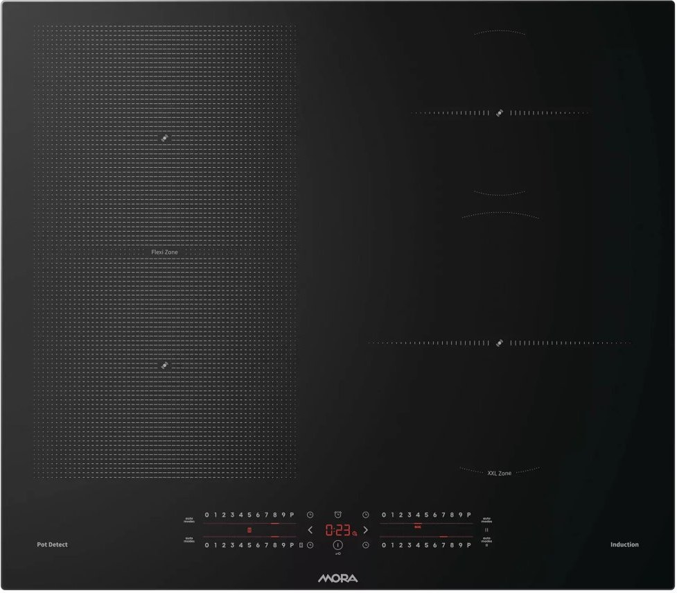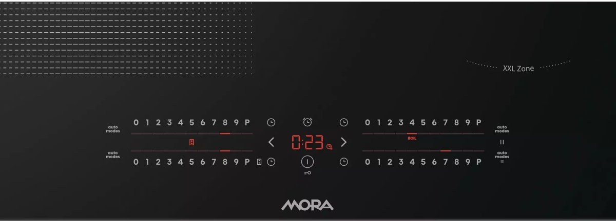 Indukčné varné platne MORA ponúkajú rôzne typy časovania varných zón (v závislosti od modelu). TimeService pomáha udržiavať prehľad o tom, ako dlho už varíte. Pomocou funkcie Timer môžete nastaviť dobu varenia až na 99 minút a kuchynská minútka TimeMinutes vás len upozorní zvukovým signálom.1x XXL Zone