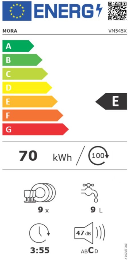 Mora VM 545 X, vstavaná umývačka riadu